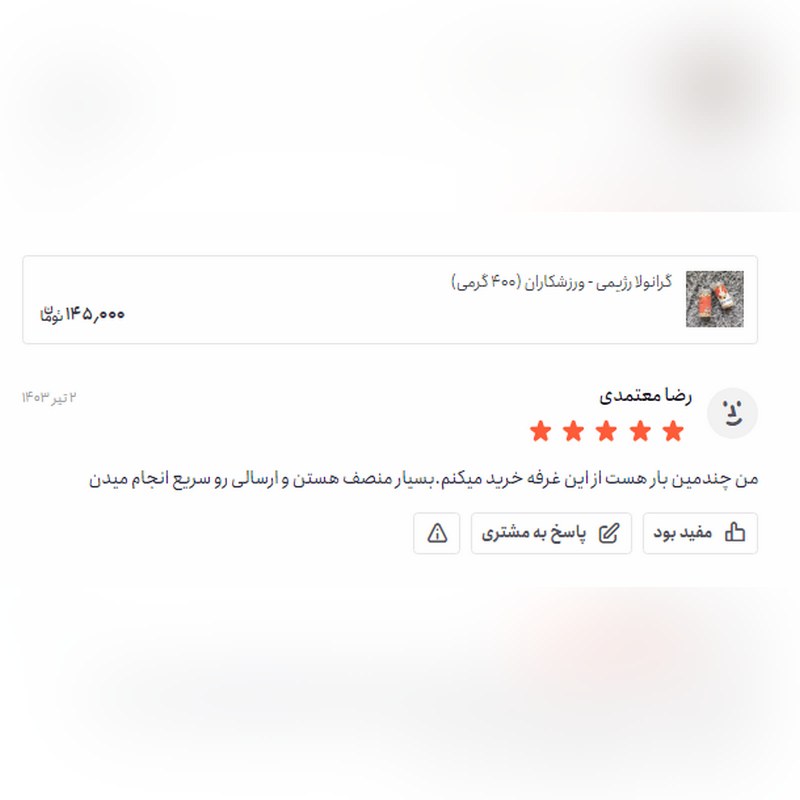 اولین کسی باشید که دیدگاهی می نویسد “گرانولا رژیمی /ورزشی/ روزانه (350 گرمی) با قیمتی استثنائی”